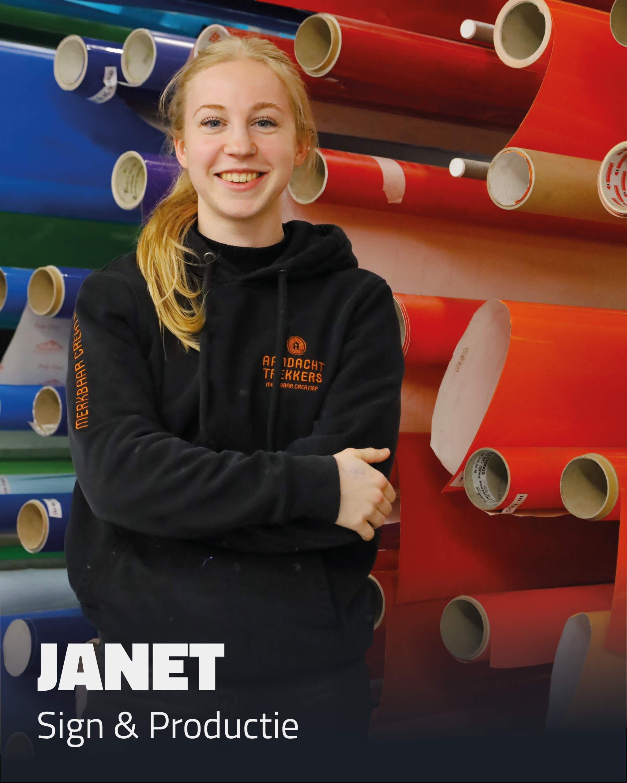 Vanuit de opleiding Signspecialist aan De Rooi Pannen in Tilburg brengt ze creativiteit én een echte aanpakkersmentaliteit mee. Spontaan, eerlijk en altijd bereid om mee te denken.