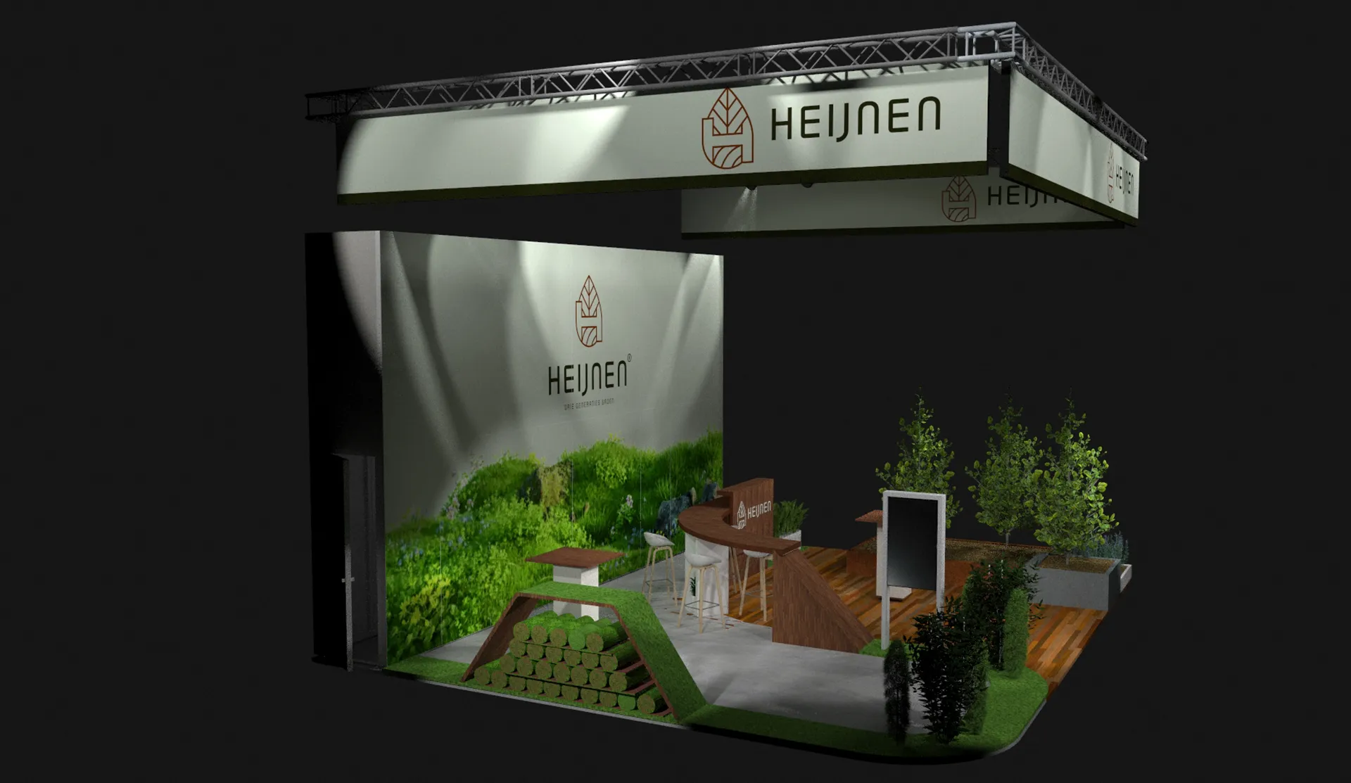 Voor Heijnen-Planten ontwikkelden we een indrukwekkende beursstand voor de Gala Bouw in Neurenberg. De uitstraling moest krachtig zijn, opvallend tussen de vele exposanten én volledig passen bij de identiteit van het merk. Een uitdaging waar we graag vol voor gaan, en dat hebben we gedaan.
