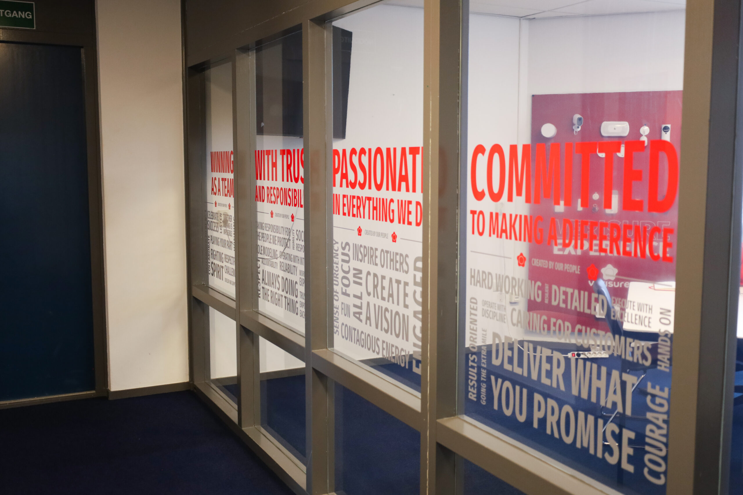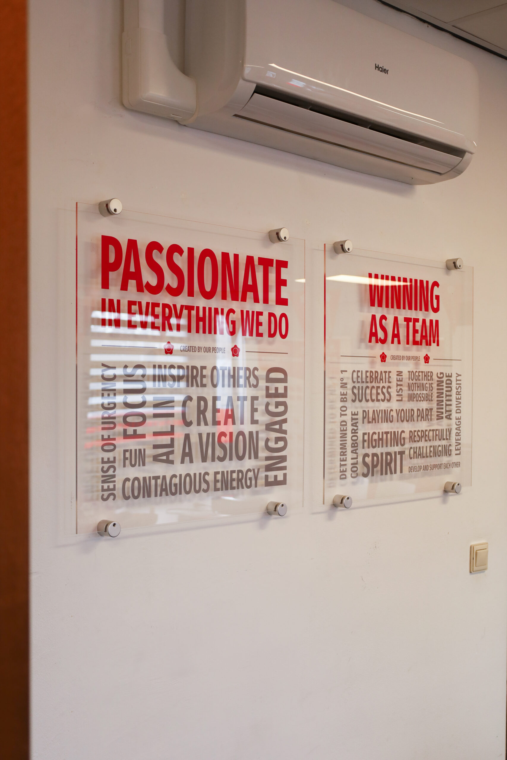 Van raamfolies tot interieurbranding, van parkeerbordjes tot het ‘Passionate Board’: elk element draagt bij aan één consistente merkbeleving. De kenmerkende rode accenten, het krachtige logo en de balans tussen actie en rust zijn zorgvuldig doorgevoerd in het interieur.